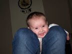scream.  Oh Joy. However, I did notice great progress from the last time we made this journey a month ago!  She really did quite well all weekend, with me sitting in the backseat with her for a good part of the trip. hhmm, and my chiropractor asks me why my back is out of line...  I think maybe the key is not to let her nap in a quiet place and to surround her with lots of people and loud events.  She was full of smiles all weekend and was happy to be passed around and meet her "cousins" and new admirers!  ;-) Michael was rather smitten with her! kinda... we'll work on it.
