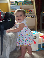 Anastasia is sleeping great, eating great, growing well, and developing quite a temper. I'm shocked. I have no idea where she gets that. When Bella hit the separation awareness and screamed for me whenever I set her down or walked away, I worked on it gradually like is generally recommended - talk to her, show her you're still there, but don't actually pick her up again. It worked beautifully and she learned she could chase after me to find me again. Anastasia starts screaming and immediately Bella runs to make her happy. It warms my heart and works beautifully, and Anastasia is no closer to entertaining herself or falling asleep for naps than she was a few months ago. I guess that's the beauty of siblings!